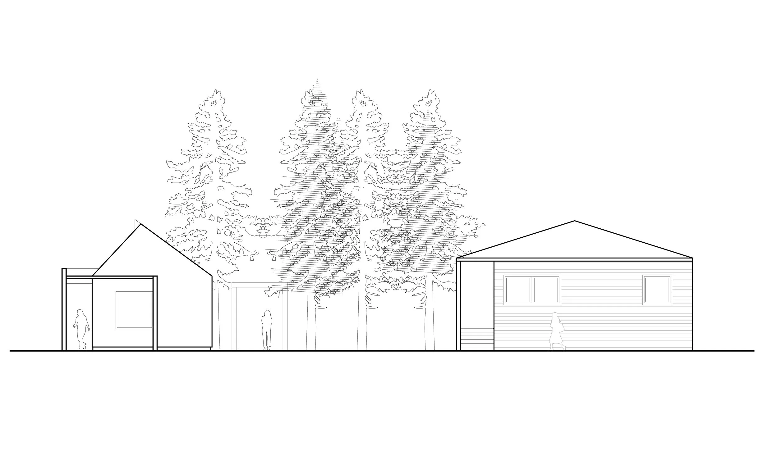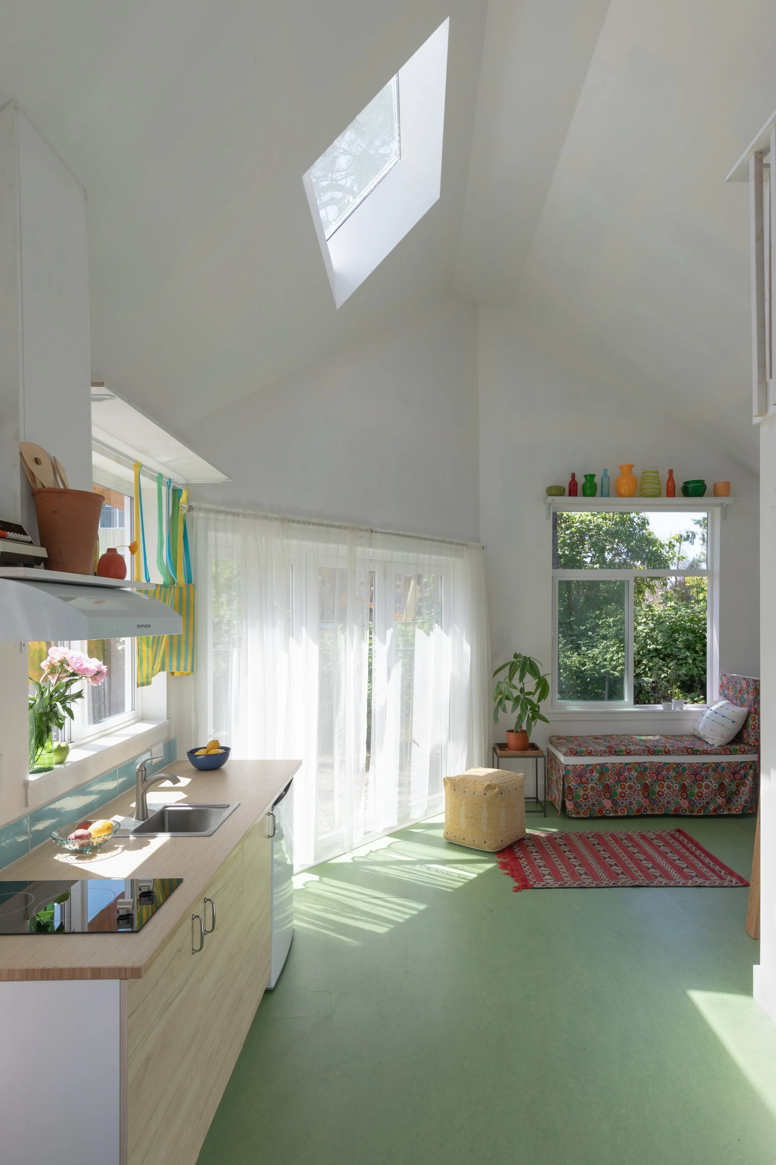 This project is an age in place DADU for a client with minimal possessions and a nomadic lifestyle. Her dear old friend and her decided to split a beautiful gardened lot, and live in proximity to each other in two separate houses.